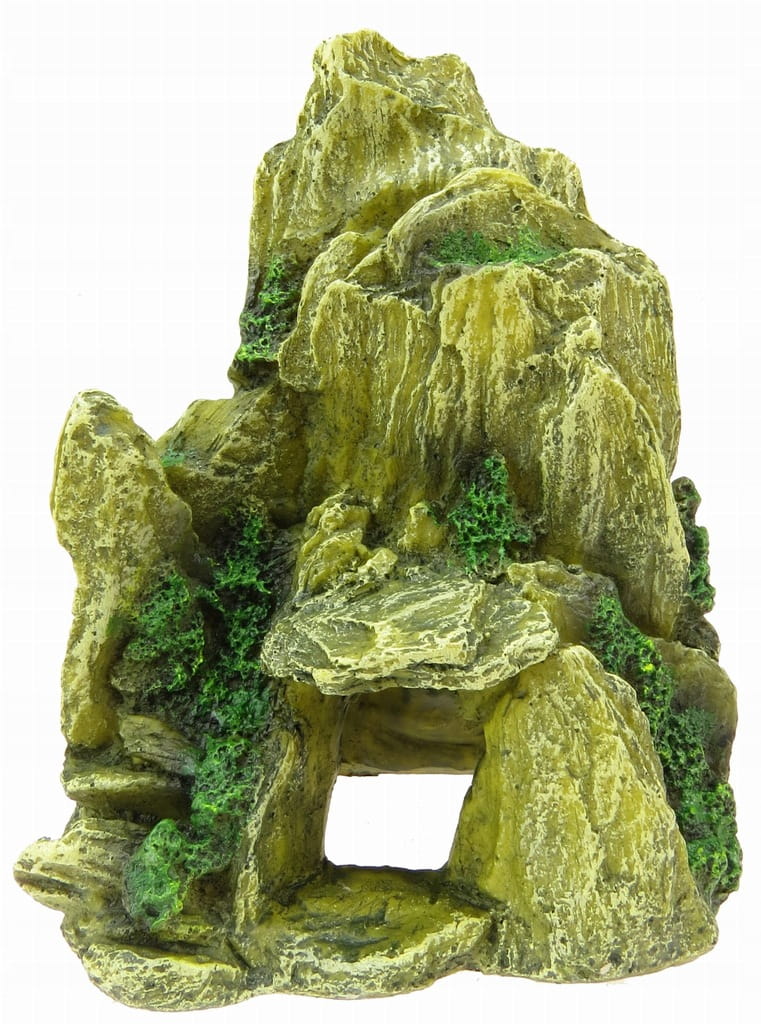 Ręcznie malowana skała z grotą i mchem do akwarium [wymiary - 15x10x19cm]
