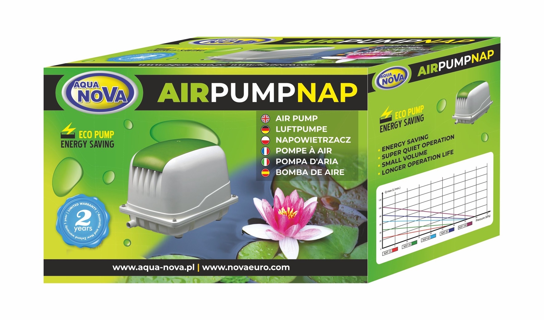 AQUA NOVA NAP-35 to kompaktowy i energooszczędny napowietrzacz przeznaczony do małych oczek wodnych oraz zbiorników ogrodowych. Zapewnia stałe napowietrzanie wody, co jest kluczowe dla zdrowia ryb oraz utrzymania stabilnych warunków biologicznych. Sprawdza się przez cały rok, pomagając zapobiegać niedoborom tlenu zarówno latem, jak i zimą.