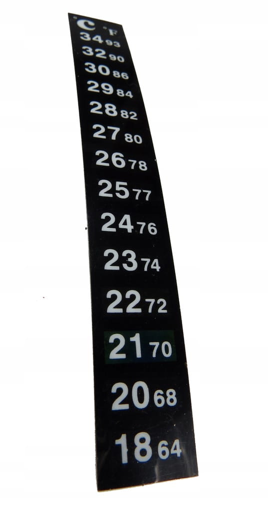 Termometr samoprzylepny, zapewnia dokładne pomiary. Zielony kolor wskazuje właściwą temperaturę.