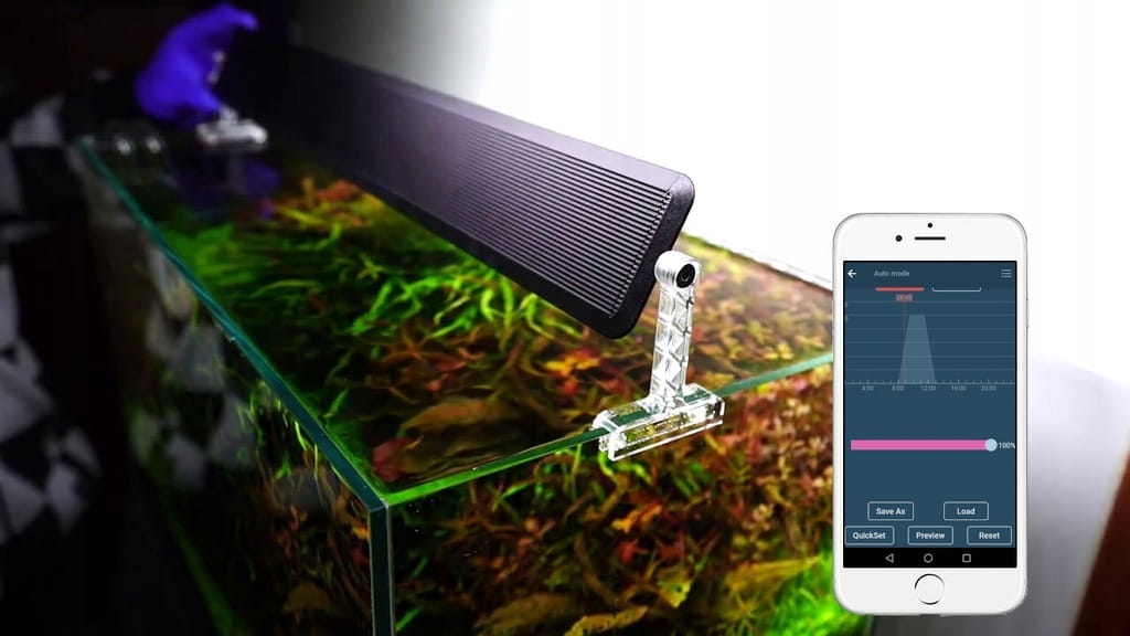 Oświetlenie Chihiros A II zostały wzbogacone o wbudowany system sterowania bluetooth, który umożliwia przypisanie każdej godzinie w ciągu dnia odpowiedniego natężenia światła oraz ustawienie świtu i zmierzchu.