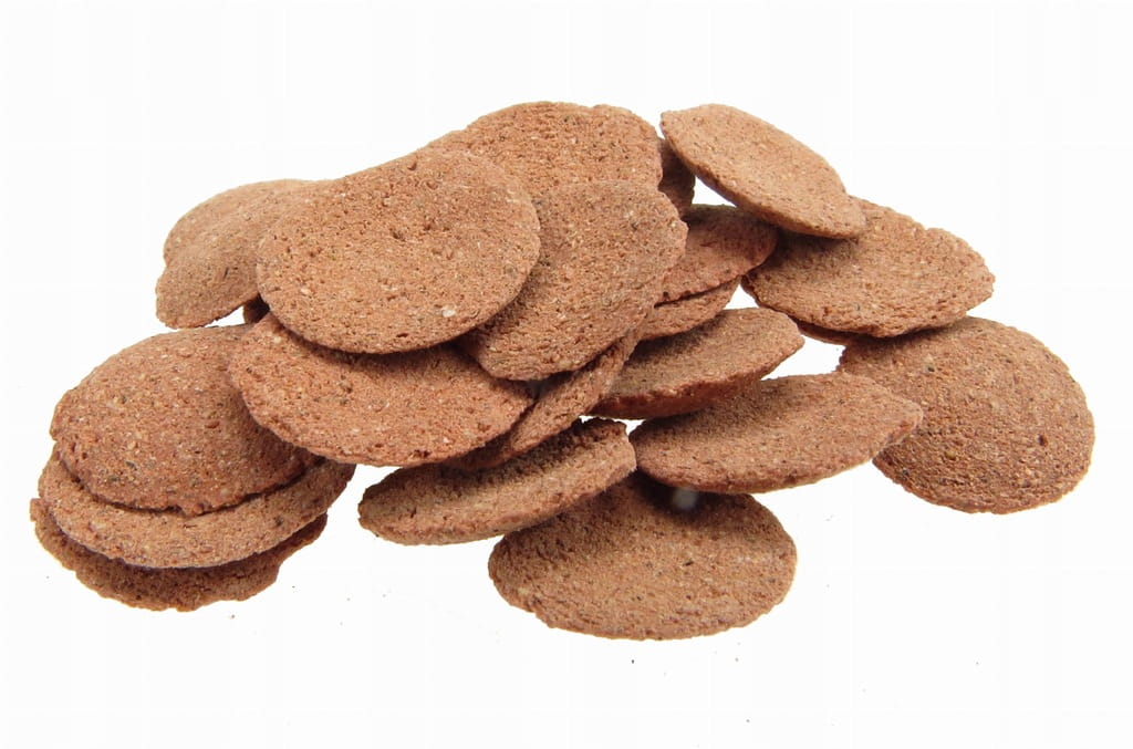 Mieszanka paszowa w postaci tonących wafelków z zawartością naturalnego barwnika, oraz glonów morskich dla dennych ryb akwariowych.