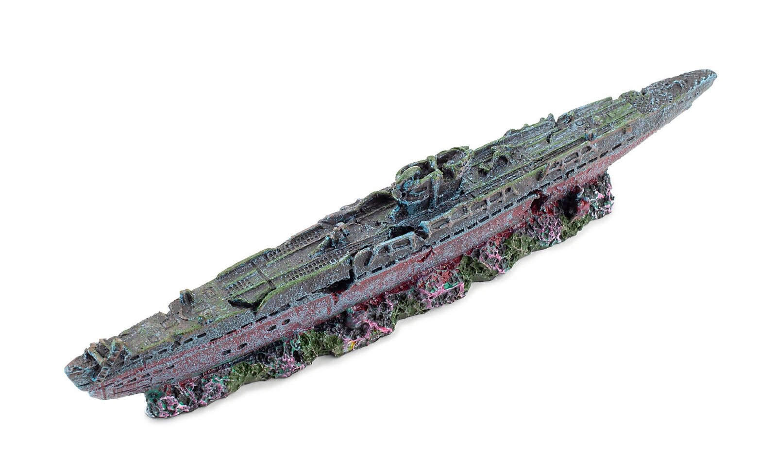 Ozdoba akwariowa wykonana z łatwo tonącego i bezpiecznego dla ryb, oraz innych zwierząt wodnych, poliestru.