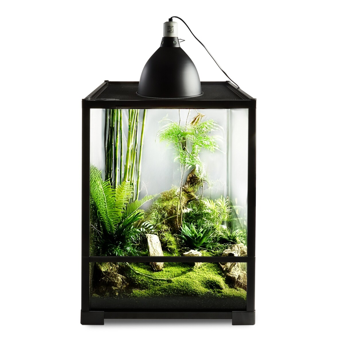 - Bezpieczeństwo: Zintegrowana siatka ochronna gwarantująca bezpieczeństwo gadów, płazów oraz innych zwierząt. Obudowa z otworami, odprowadzającymi nadmiar ciepła.