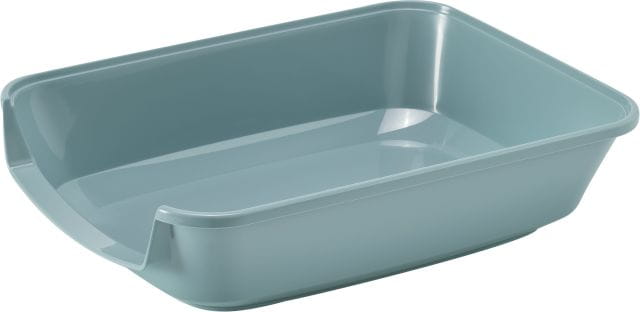 Kuweta Maryloo rozmiar S 37x27x8,9 cm, w kolorze niebiesko-szarym, z obniżonym wejściem dla kociąt, z plastiku pochodzącego w 98% z recyklingu, bez toksycznego BPA. Ulega recyclingowi w 100%.
