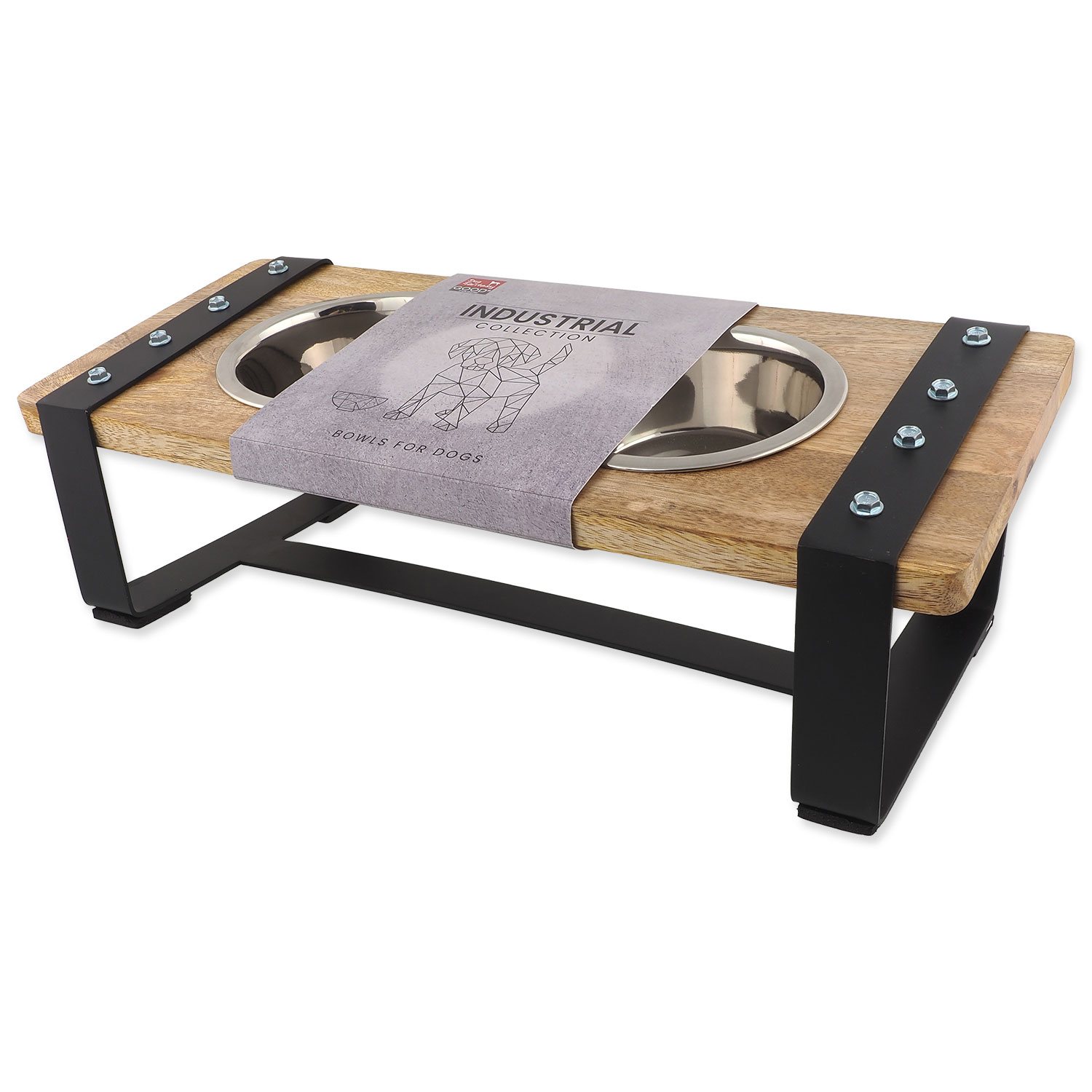 Miski Dog Fantasy stal nierdzewna z drewnianą podstawką 2x400ml