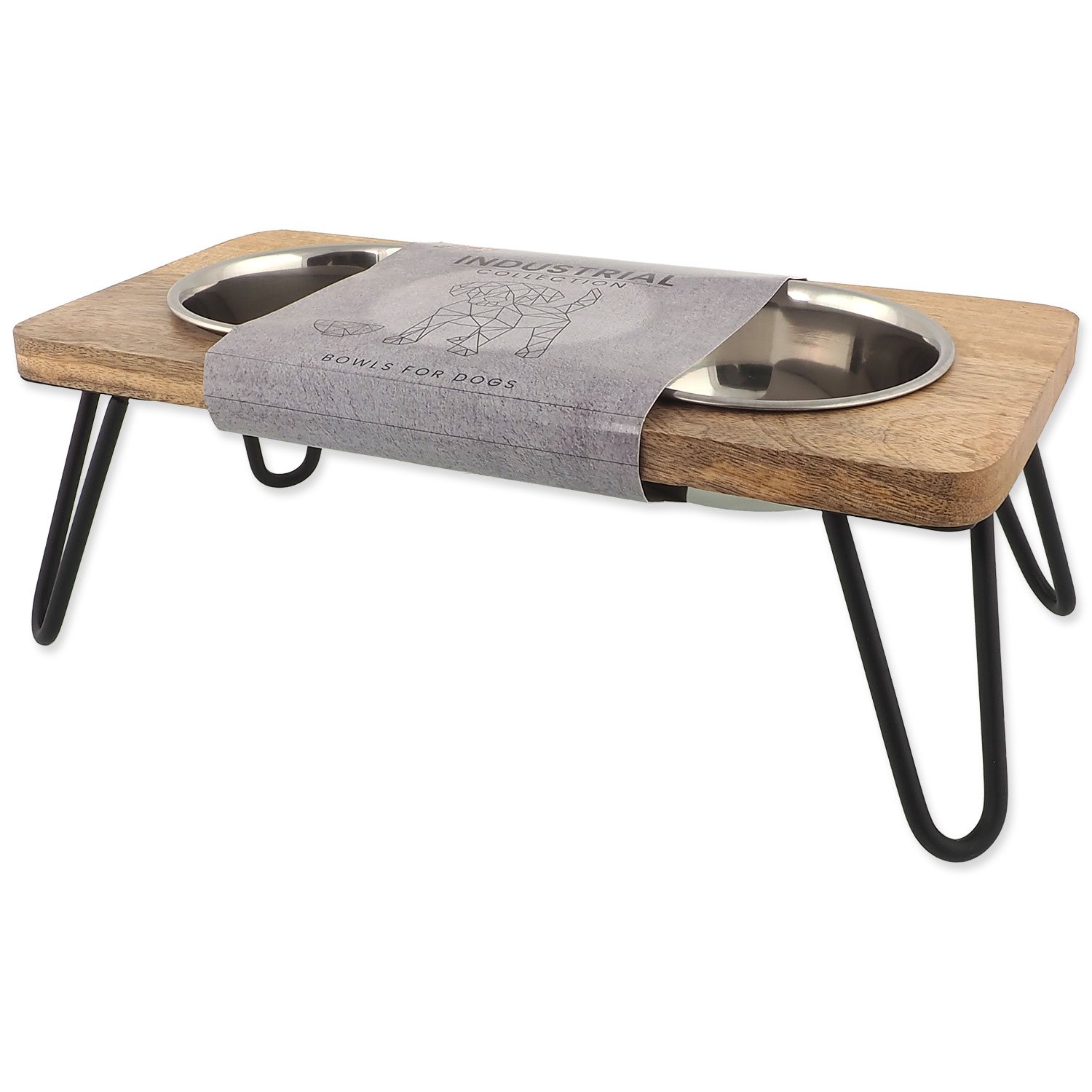 Dwie miski w solidnym drewnianym stojaku z żelazną konstrukcją - praktyczne i stylowe rozwiązanie 2x450ml