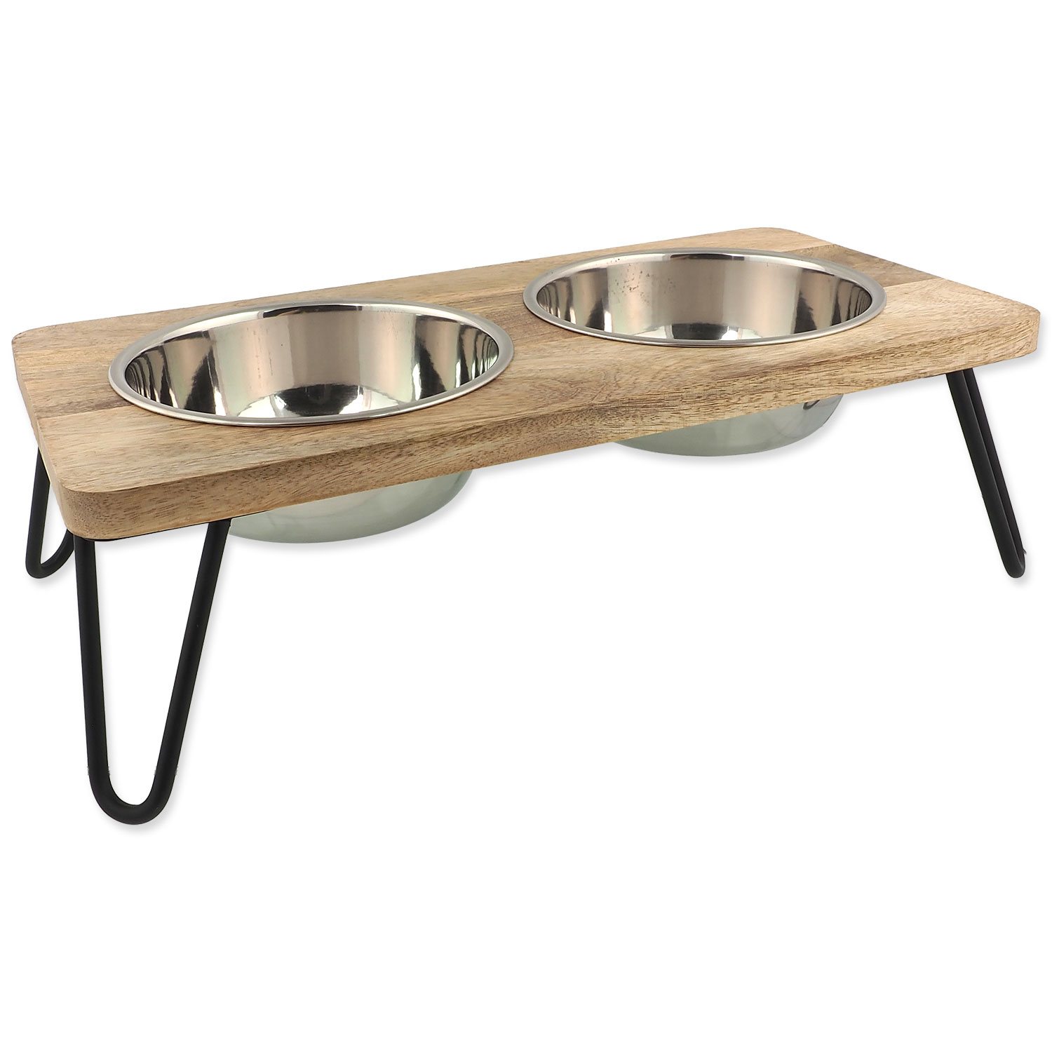 Dwie miski w solidnym drewnianym stojaku z żelazną konstrukcją - praktyczne i stylowe rozwiązanie 2x850ml