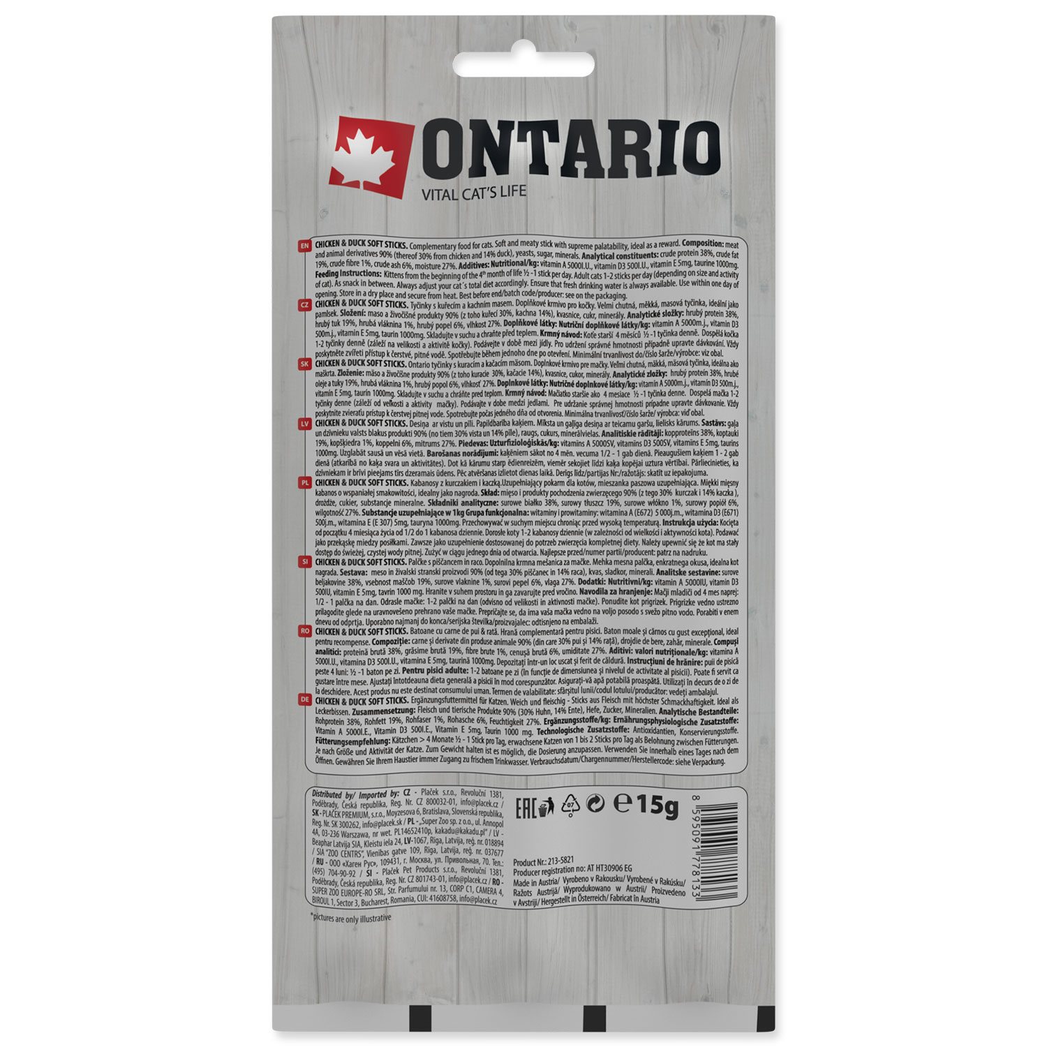 ONTARIO Miękki kabanos dla kotów kurczak z kaczką pakowane po trzy sztuki 3x5g