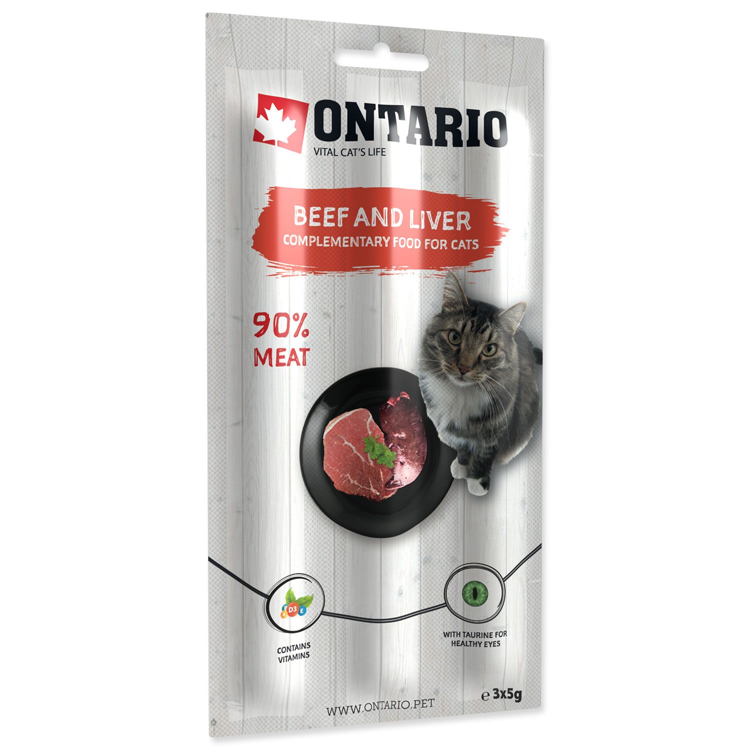 ONTARIO Miękki kabanos dla kotów wołowina z wątróbką pakowane po trzy sztuki 3x5g