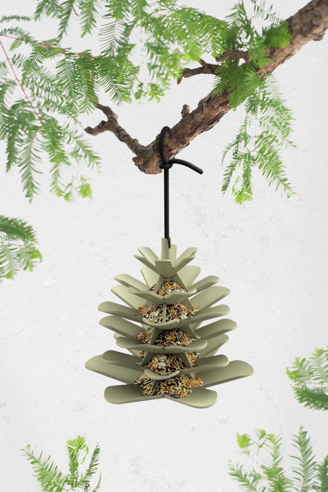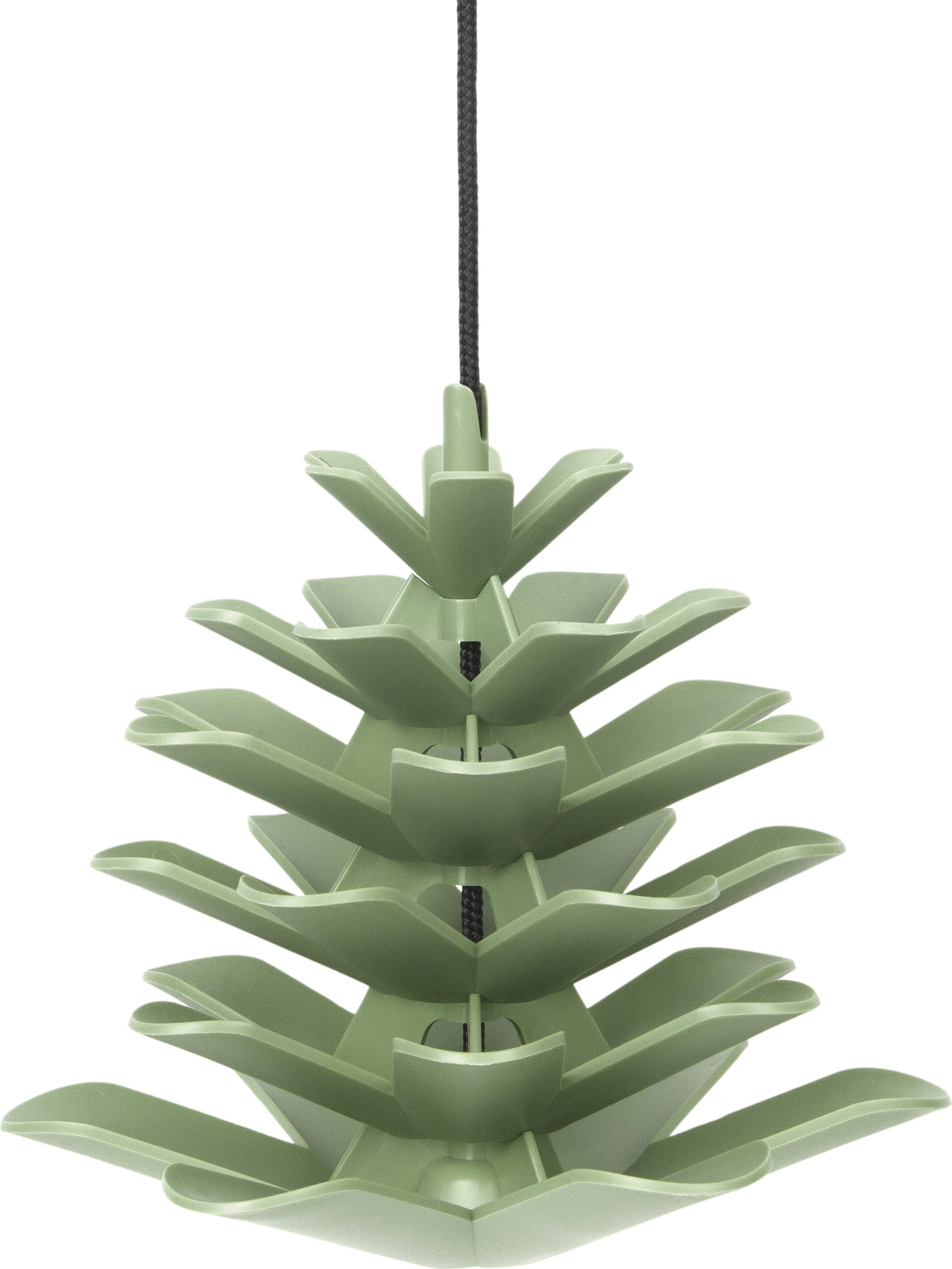 Karmnik Jesse w kształcie szyszki na ziarno, nasiona czy mączniki dla ptaków zimujących, wymiary 13x15cm. Do samodzielnego złożenia. Do powieszenia na balkonie czy w ogrodzie. Wykonany z tworzywa w 98% z recyclingu.