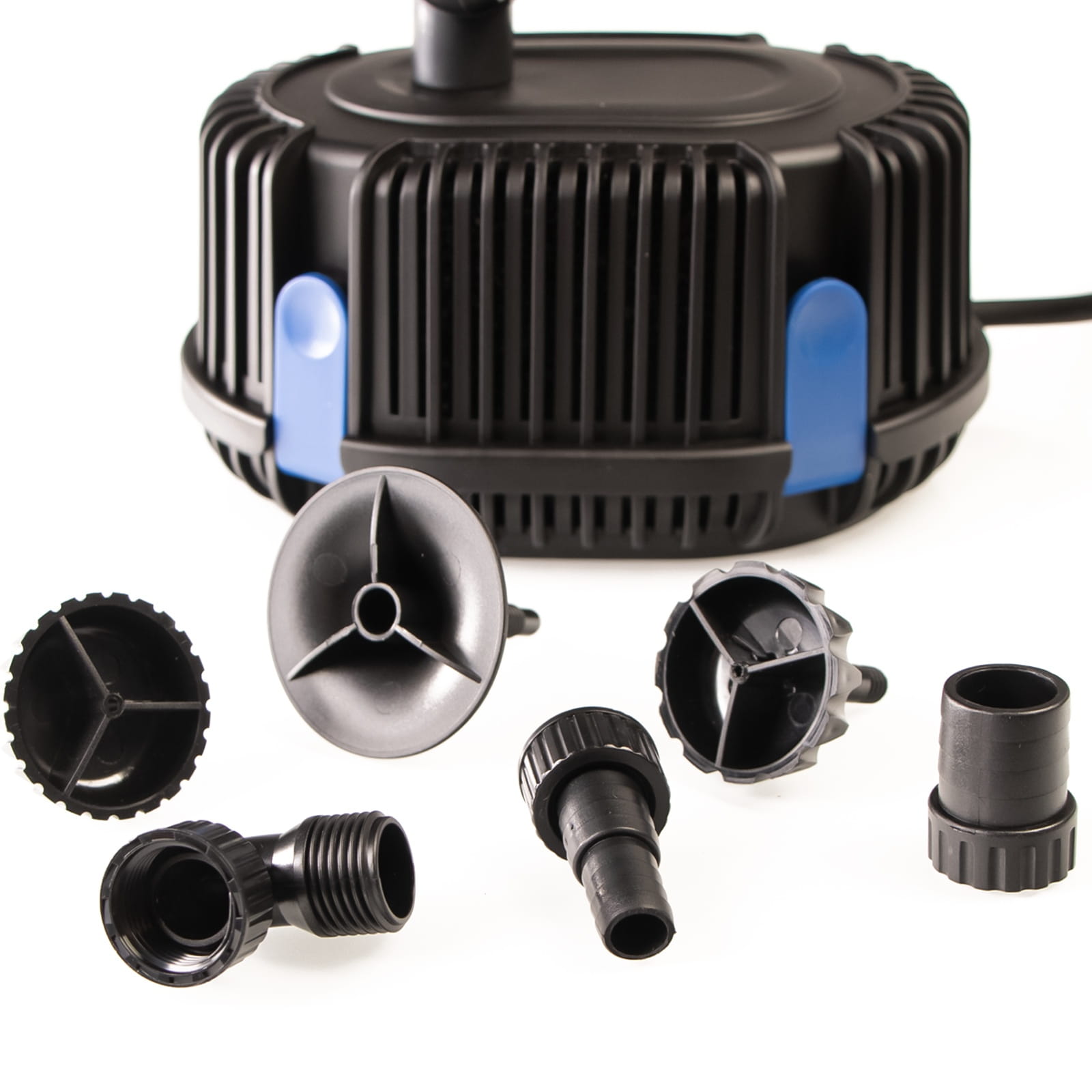 Fontanna i trójnik na wąż: Dopełnieniem doskonałego zestawu filtracyjnego jest wielofunkcyjna fontanna. Posiada ona trzy różne dysze wylotowe o unikalnych możliwościach umożliwiających stworzenie różnorodnych kształtów fontanny wodnej. Możesz skorzystać z trójnika, aby przekazać strumień wody np na fontannę i kaskadę wodną lub na tylko kaskadę. Trójnik posiada płynną podwójną regulację przepływu, aby użytkownik mógł sam ustalić ile wody trafi do wodospadu a ile do fontanny.