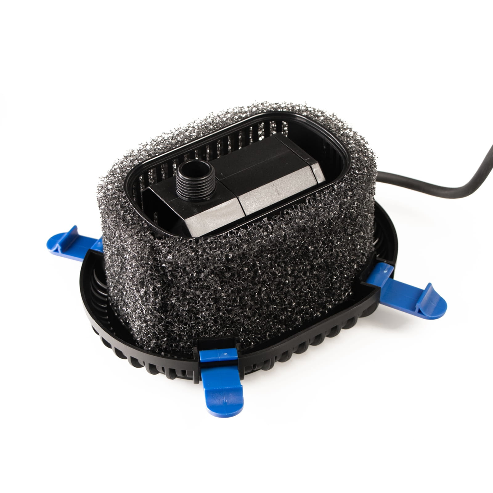 Potrójne serce zestawu. kosz zabezpiecza przed dostawaniem się większych zanieczyszczeń np: liści, które zapaskudziłyby gąbkę. Gąbka czyści wodę z wszelkich zabrudzeń, a następnie pompa wyrzuca czystą już wodę w pióropusz fontanny.