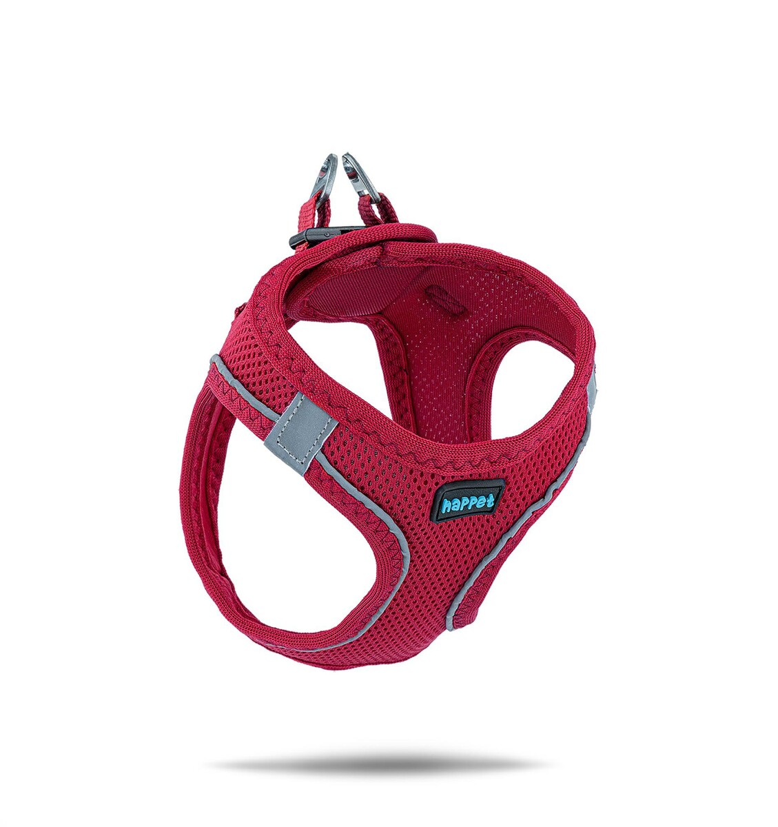 Szelki Air Comfort posiadają obręcz szyjną i piersiową z łączeniem na klatce piersiowej i plecach, zostały wykonane z solidnego, sztywnego materiału przepuszczającego powietrze, z odblaskowymi elementami. Zapinane są dwuetapowo, na plastikową klamrę oraz rzep.