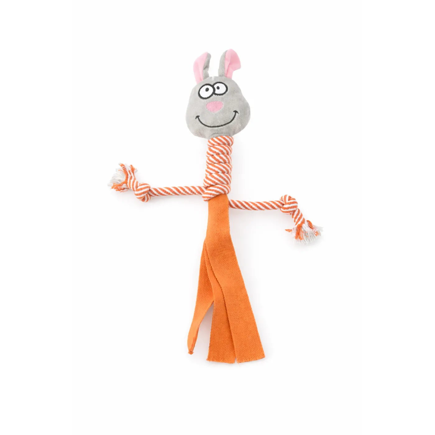 Królik ze sznurem – pluszowy szarpak dla psa, 36 × 48 cm, zabawa i przytulanie