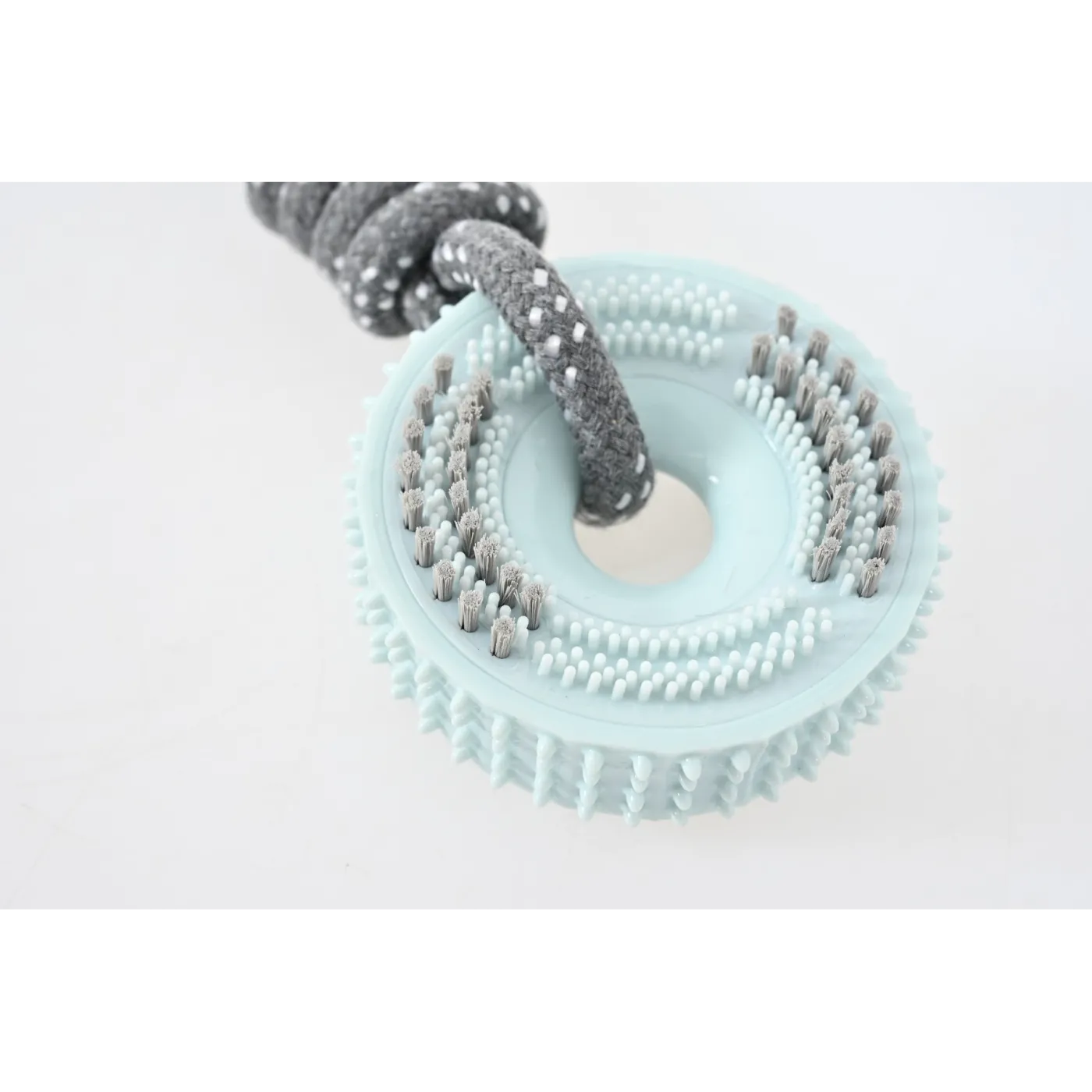 Specjalnie zaprojektowane wypustki na powierzchni gryzaka wspomagają czyszczenie zębów, usuwanie osadu i masaż dziąseł. Dodatkowy sznur umożliwia wspólną zabawę w przeciąganie, co wzmacnia więź między psem a opiekunem.