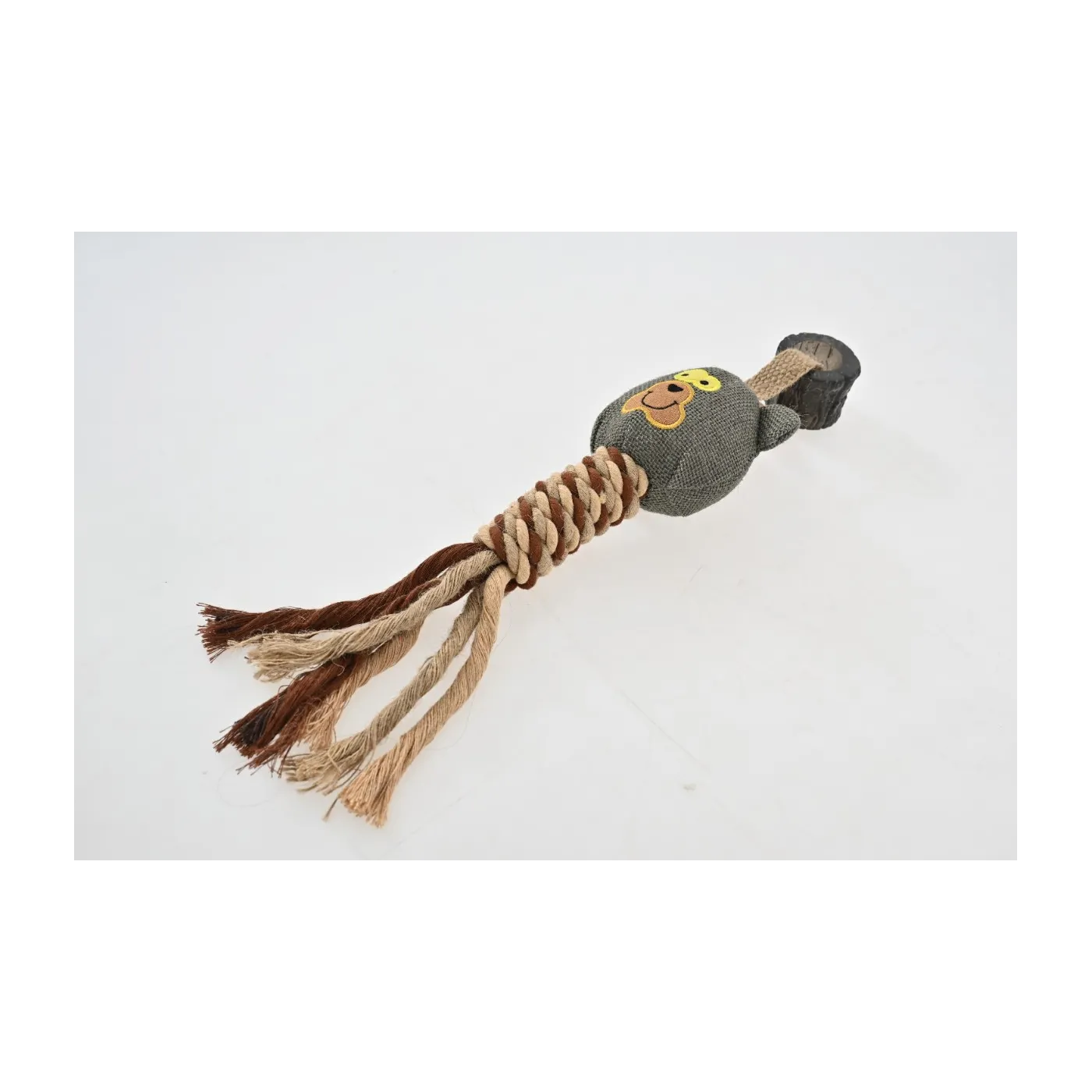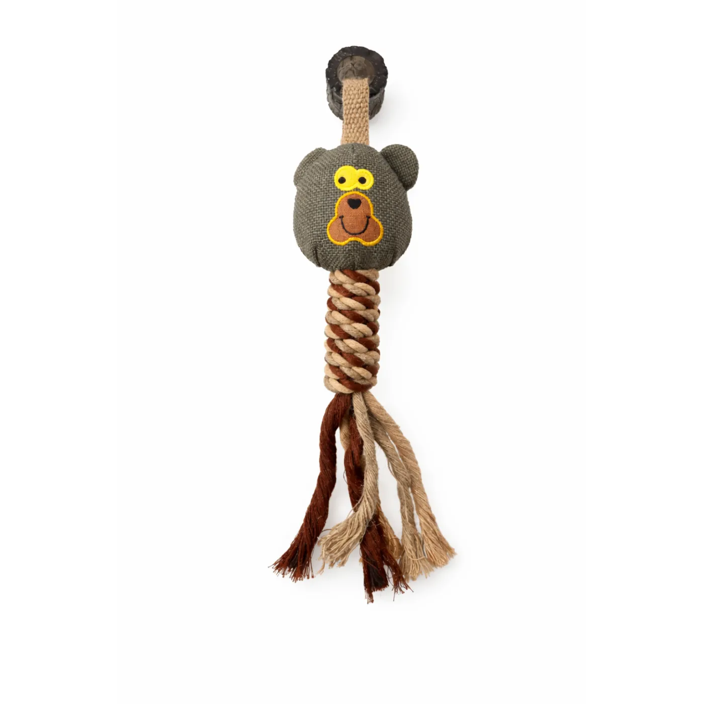 Wbudowana piszczałka pobudza ciekawość psa, a gumowy uchwyt ułatwia chwytanie i przeciąganie. Skręcony sznur z frędzlami wspiera zdrowie jamy ustnej poprzez gryzienie i masaż dziąseł.