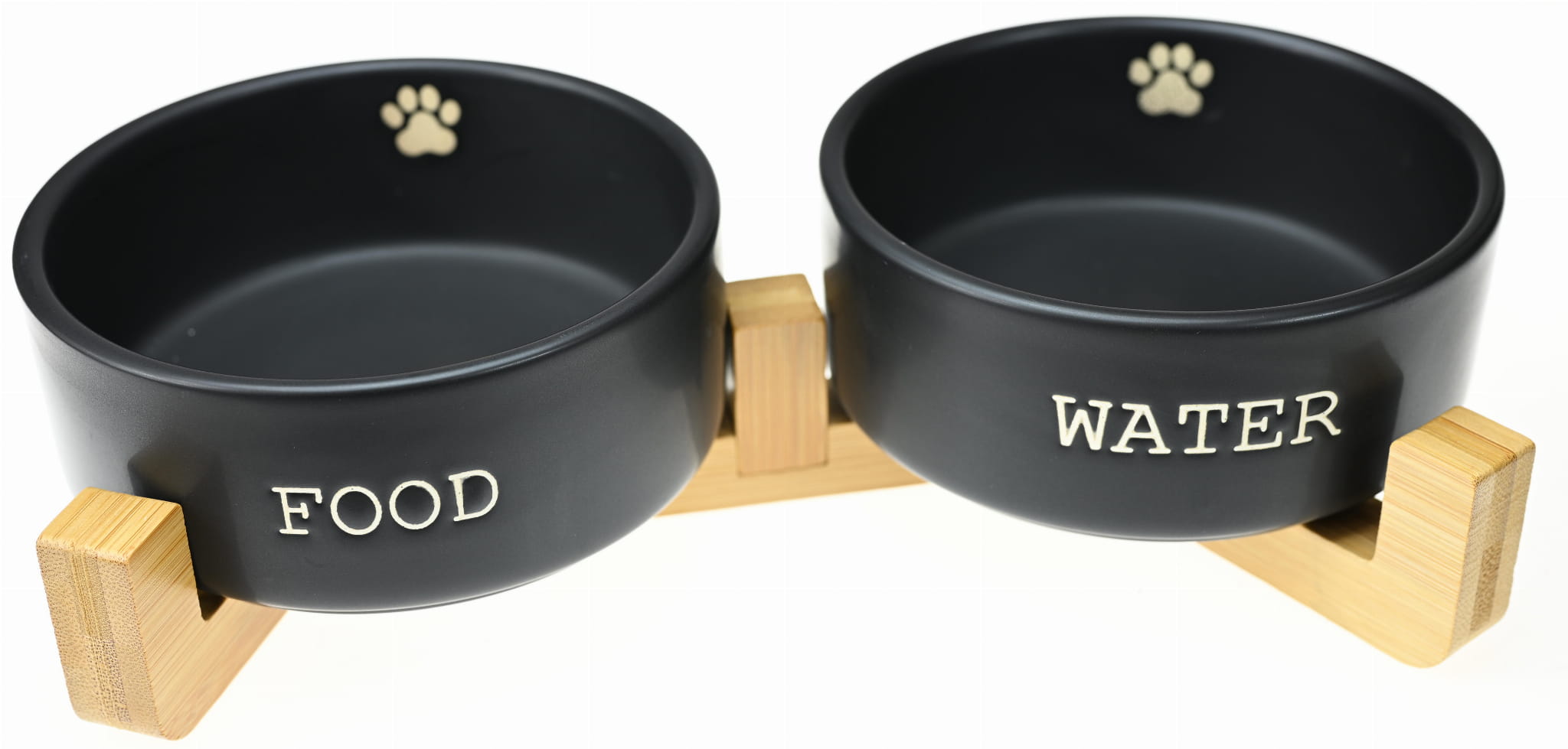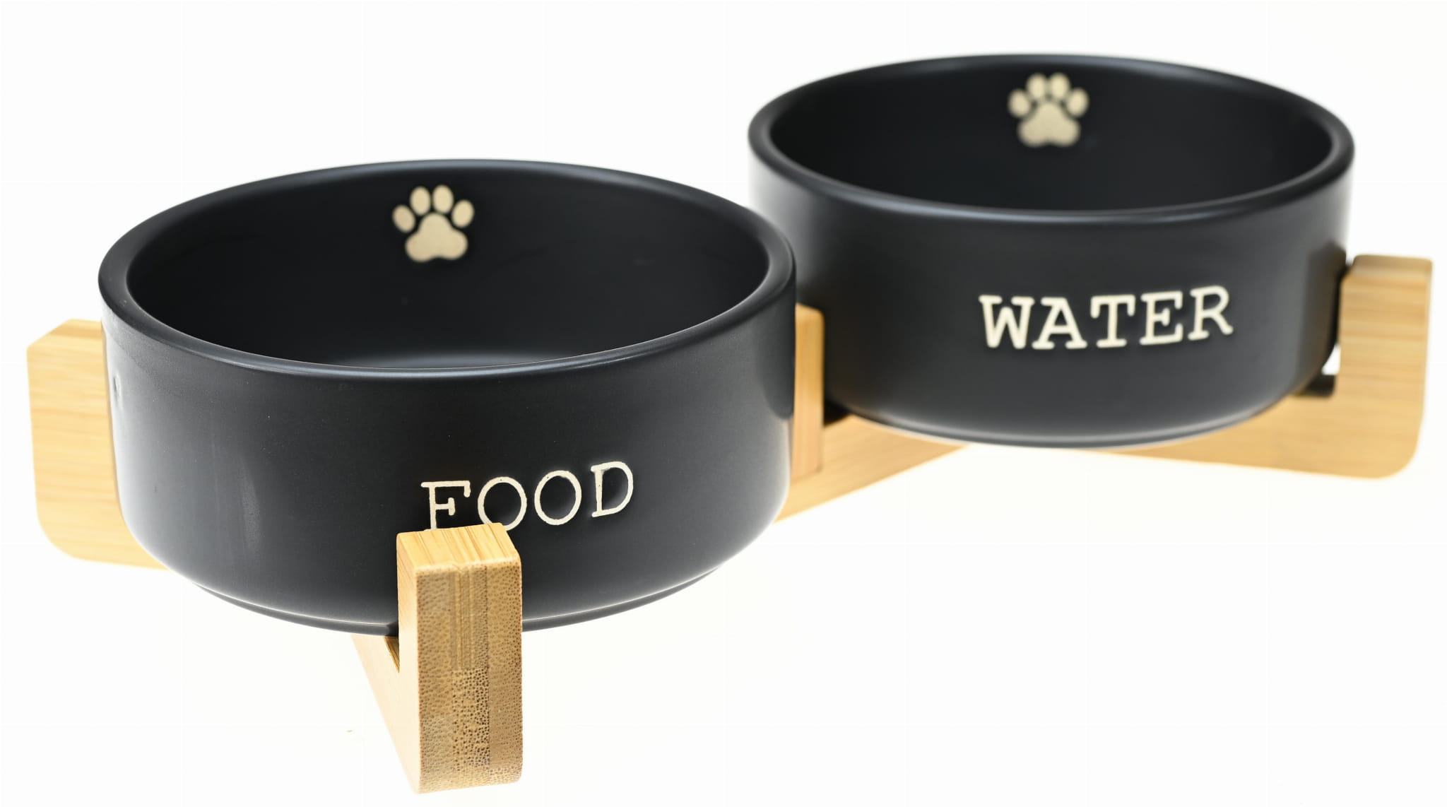 MISKA CERAMICZNA PODWÓJNA NA DREWNIANYM STOJAKU NA WODĘ I KARMĘ CZARNA 2x 13x5,5cm Y2783